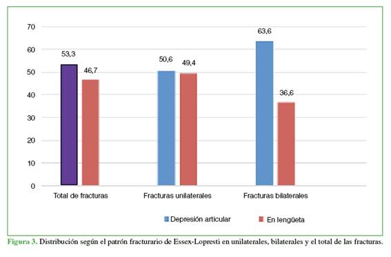 fracturario según Essex-Lopresti,9 se observó una distribución