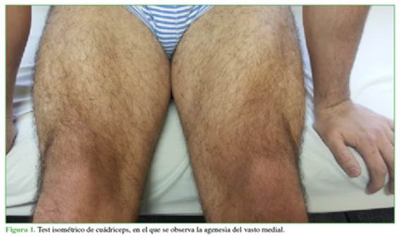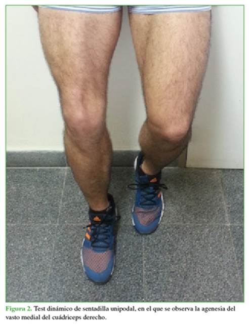 examen físico, surge una gran hipoatrofia del vasto medial oblicuo del cuádriceps derecho a la inspección. El paciente presenta