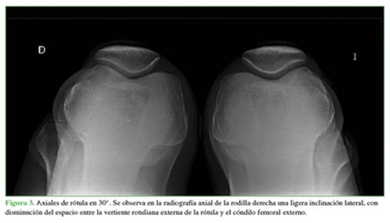 axial de ambas rótulas en 20° y 45° (Figura 3).