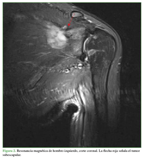 movilidad de la escápula. Además, la resonancia magnética reveló una lesión en