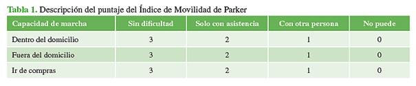 Movilidad de Parker, complicaciones y tasa de mortalidad a los 12 meses y al