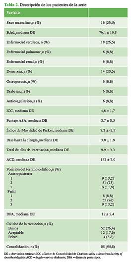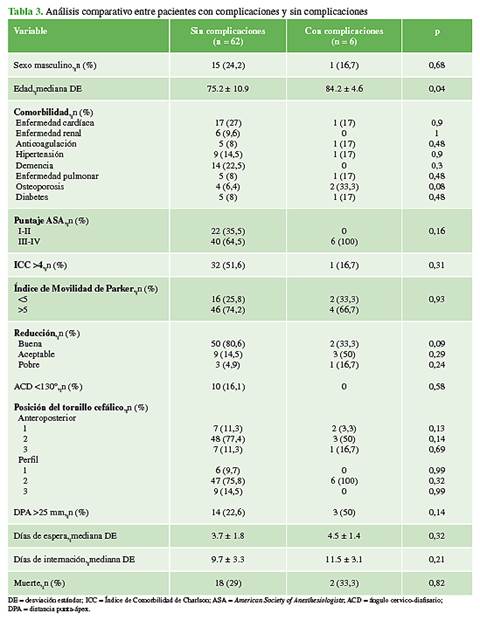 fijación del tornillo cefálico. Al comparar pacientes con complicaciones o sin