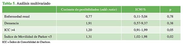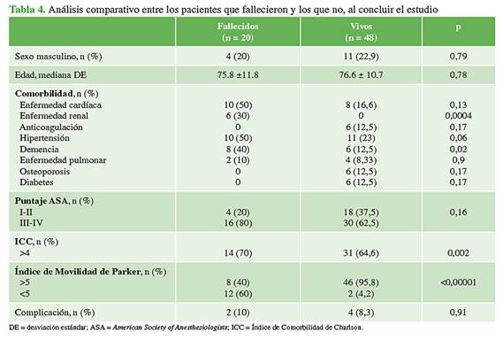 Charlson >4 y el puntaje de Parker <5 en quienes fallecieron. El puntaje
