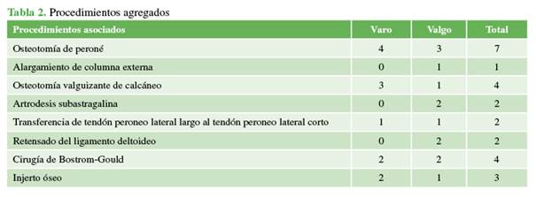 supramaleolares en pacientes con artrosis de tobillo: resultados clínicos y