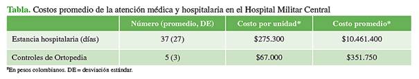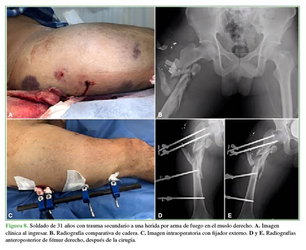 de Colombia, que sufrieron fracturas de fémur o tibia por trauma de guerra