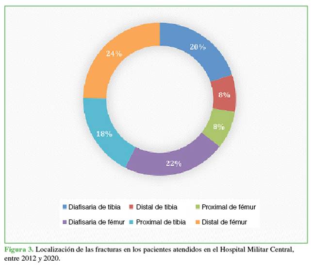 fracturas femorales o tibiales por traumas de guerra entre 2012 y 2020,