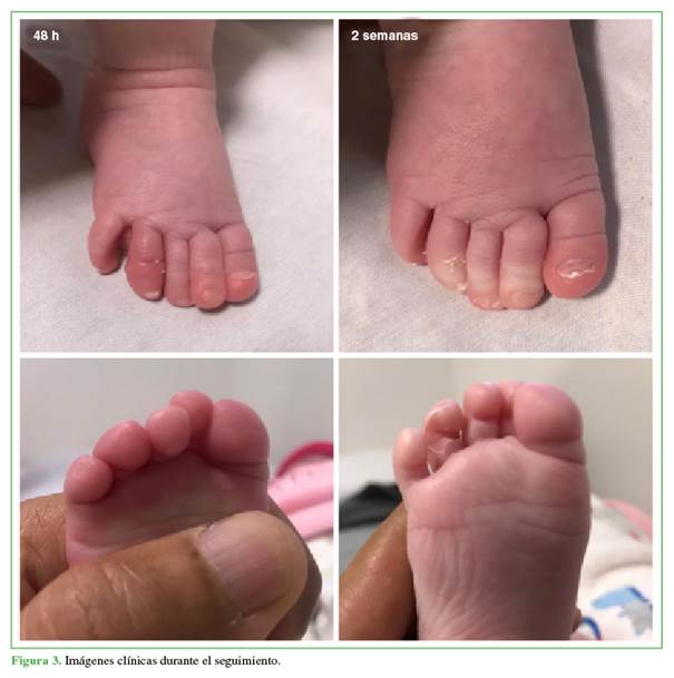 mejoró la perfusión distal y disminuyó el edema a los pocos minutos (Figura 3). La paciente fue controlada al día
