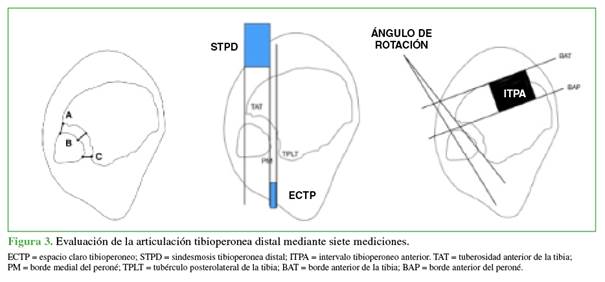 solapamiento tibioperoneo distal) normales en la radiografía de frente.14 En un estudio cadavérico, se demostró que