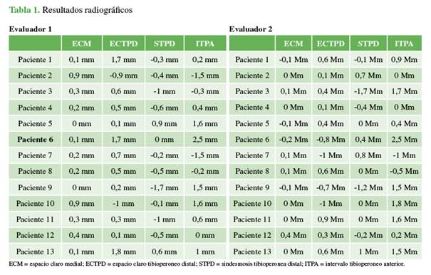 posoperatorios (espacio claro medial, solapamiento tibioperoneo distal, espacio