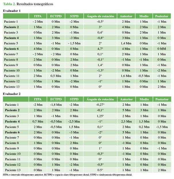 tibioperoneo anterior que aumentó en un caso. La medición tomográfica