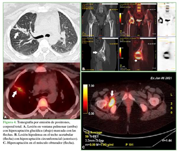 evaluación también incluyó una tomografía por emisión de positrones (Figura 4) que mostró una lesión en el lóbulo