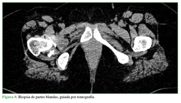 positrones, se decidió tomar una biopsia de la lesión acetabular guiada por