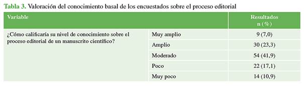 conocimiento del proceso editorial. Resultados: Se recibieron 130