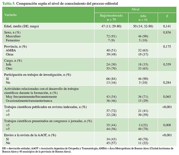 than 5 articles in indexed journals (p<0.001), in our association’s journal