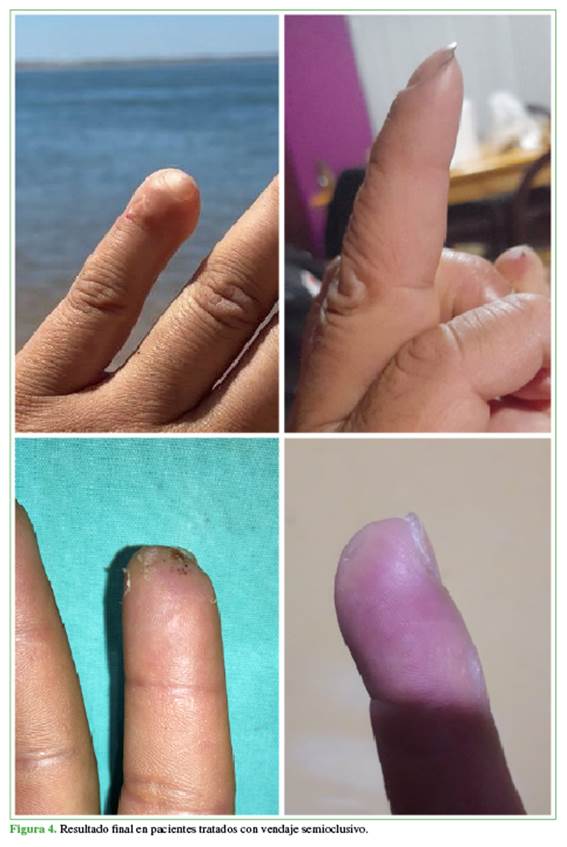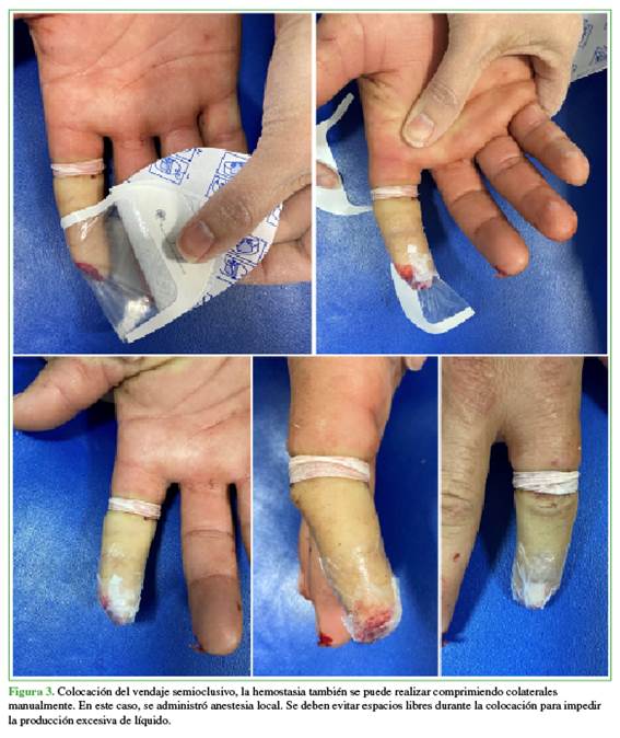 semioclusivo en las lesiones de la punta de los dedos, incluso con exposición