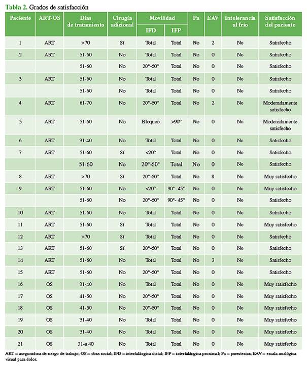 En 41 de los 47 dedos tratados, los resultados funcionales y estéticos fueron
