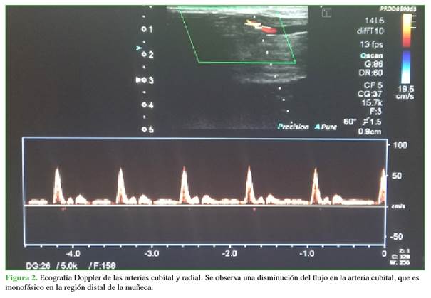 arteria cubital, y la trombosis se confirmó mediante ecografía Doppler y