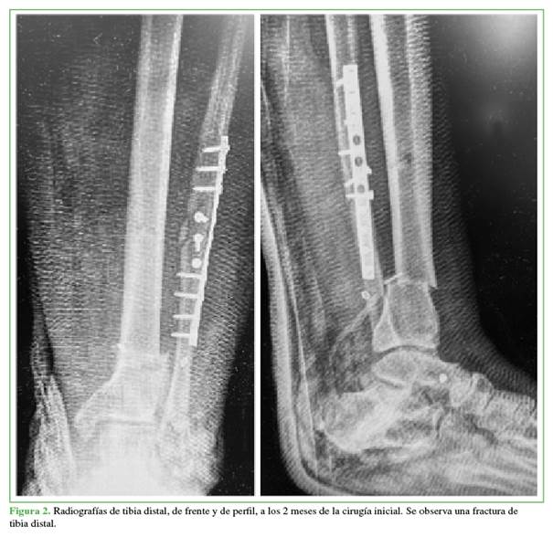 resultados. Presentamos un caso de una fractura de tibia como complicación de
