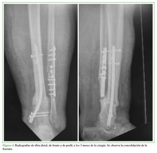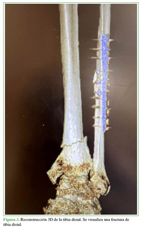 3), se diagnosticó una fractura de tibia distal OTA/AO42-A3.3 en la zona