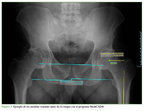 mediciones en la radiografía panorámica de pelvis obtenida con el paciente de