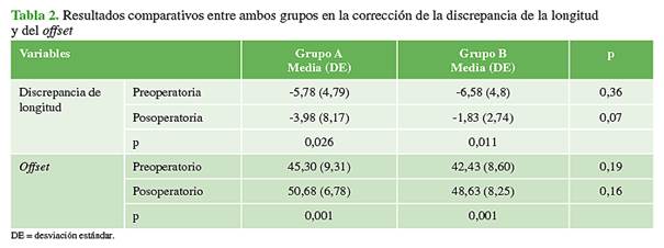 discrepancia en la longitud de las extremidades y restaurar el offset en la artroplastia total de