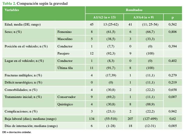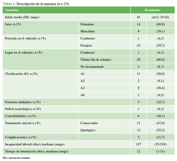 (n = 20; 86,5%). Un solo caso correspondía a un conductor del vehículo. Se