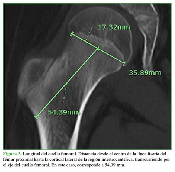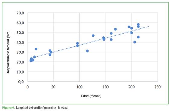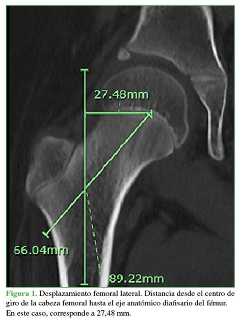 Se tomaron las siguientes medidas: desplazamiento femoral, longitud del cuello