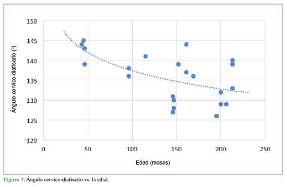 esquelética, los valores de normalidad para el desplazamiento (offset) femoral, el ángulo