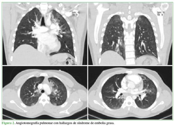 de embolia grasa, se solicita una angiotomografía pulmonar que confirma el