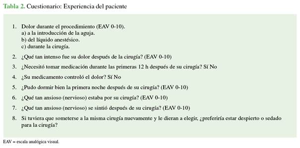 técnica anestésica. Materiales y Métodos: Se realizó un estudio descriptivo
