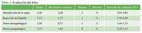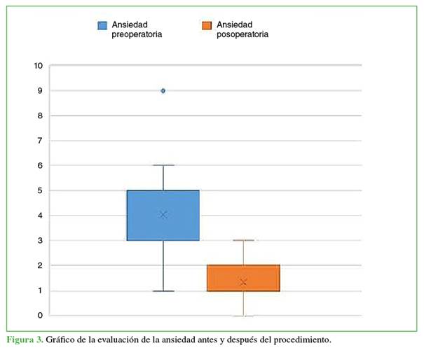 procedimiento, los niveles de dolor y ansiedad fueron bajos. Se registró un