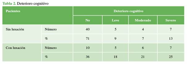 recurrencia de las luxaciones en pacientes con deterioro cognitivo moderado o