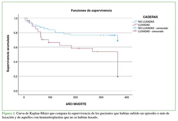 La tasa de mortalidad global de los 28 pacientes con luxación fue del 42% en
