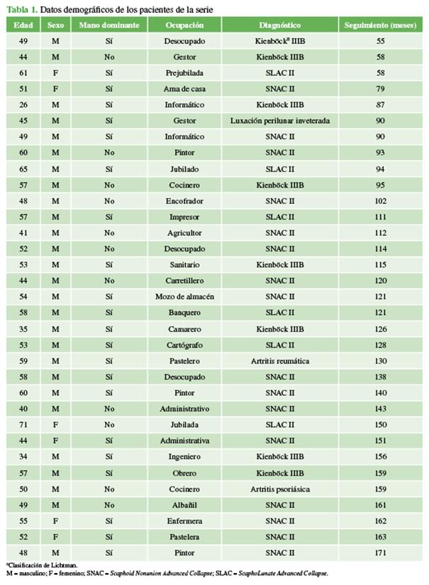 carpectomía proximal. Materiales y Métodos: Estudio descriptivo retrospectivo de