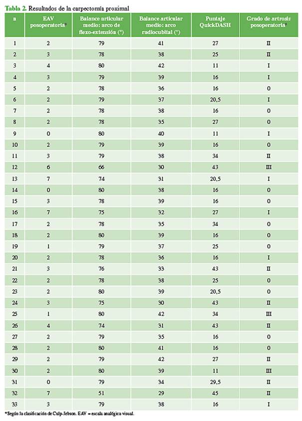 artrodesis total de muñeca. Conclusiones: La carpectomía proximal es una opción terapéutica que