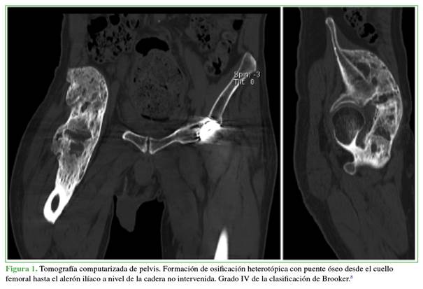 con una osificación heterotópica en la cadera derecha. Este trastorno se