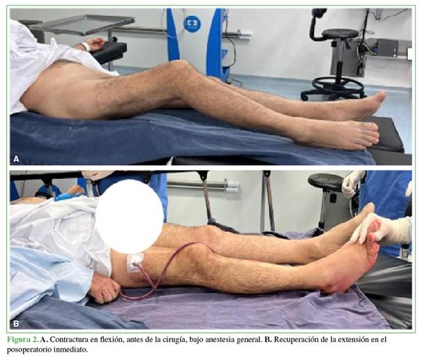 anquilosis y una contractura que limitó la flexión a 45°, lo que, a su vez,