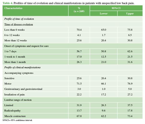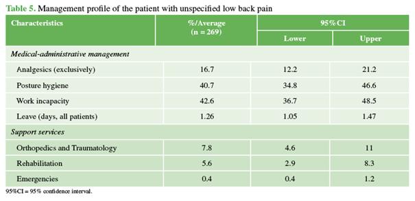 origen de la lumbalgia después de un esfuerzo representó el 22,6% (IC95%