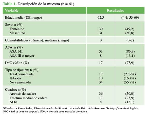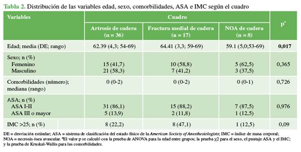 fracturas mediales de cadera y 36 coxartrosis. En el seguimiento, no se
