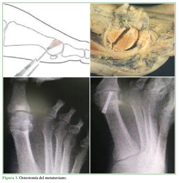 dorsal asociada a osteotomía dorsiflexora en el metatarsiano distal y la