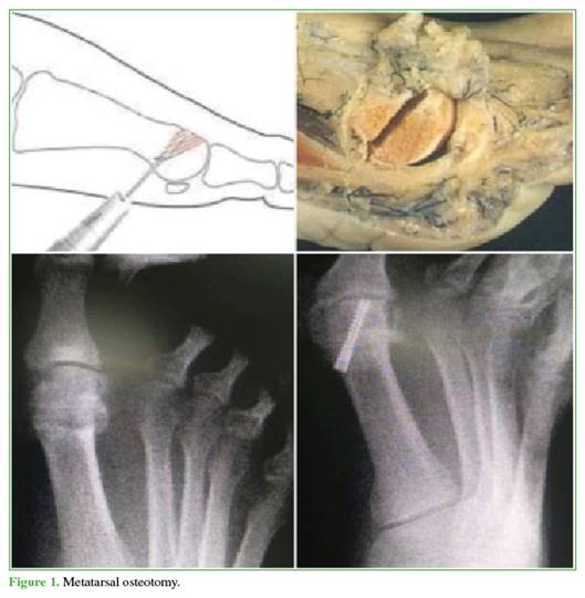 asociada a osteotomía dorsiflexora en el metatarsiano distal y la falange