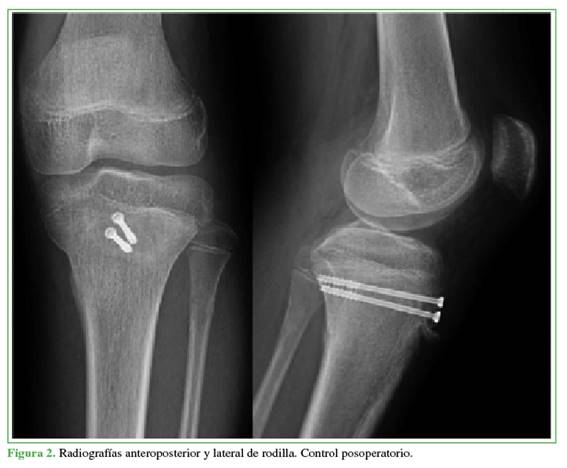 tuberosidad tibial anterior en un adolescente luego del tratamiento quirúrgico.