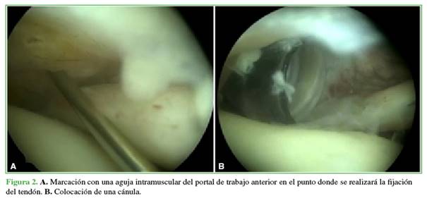 se decide hacer una tenodesis, con una aguja intramuscular, se marca el portal