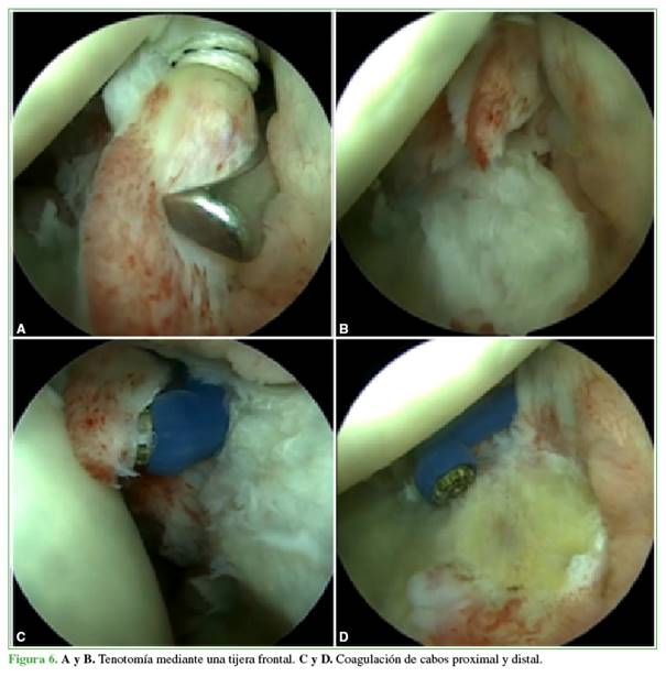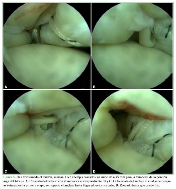 tenodesis de la PLB (Figura 5). Por último, se realiza la tenotomía y se procede a la
