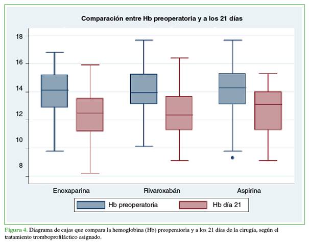 estudiadas en nuestra cohorte (enoxaparina, rivaroxabán y aspirina) para la