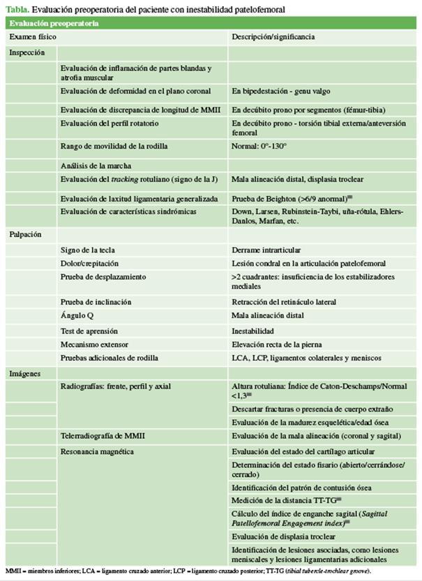 anterior de la tibia y la porción más profunda de la tróclea femoral), laxitud
