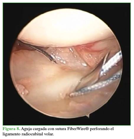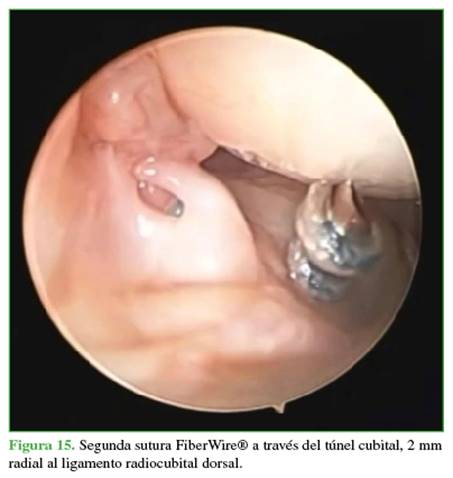 otra para fijar el ligamento radiocubital dorsal a la fóvea. Se evaluaron el