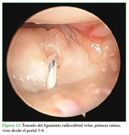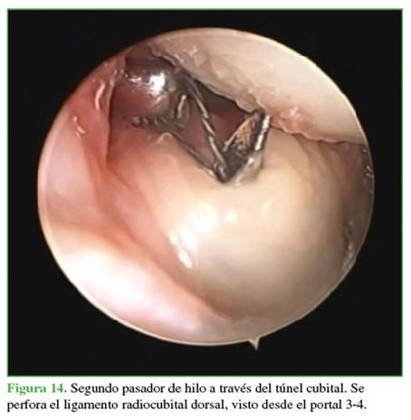monotúnel. Se utilizó una sutura para fijar el ligamento radiocubital volar y
