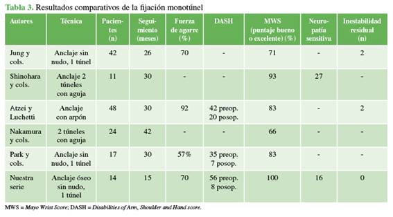 fibrocartílago triangular tratados con un anclaje óseo isométrico con doble