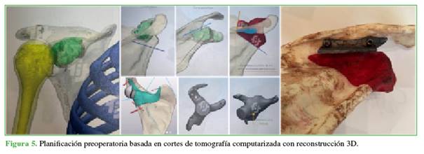 con la impresión 3D del defecto con apoyo acromial junto a una prótesis